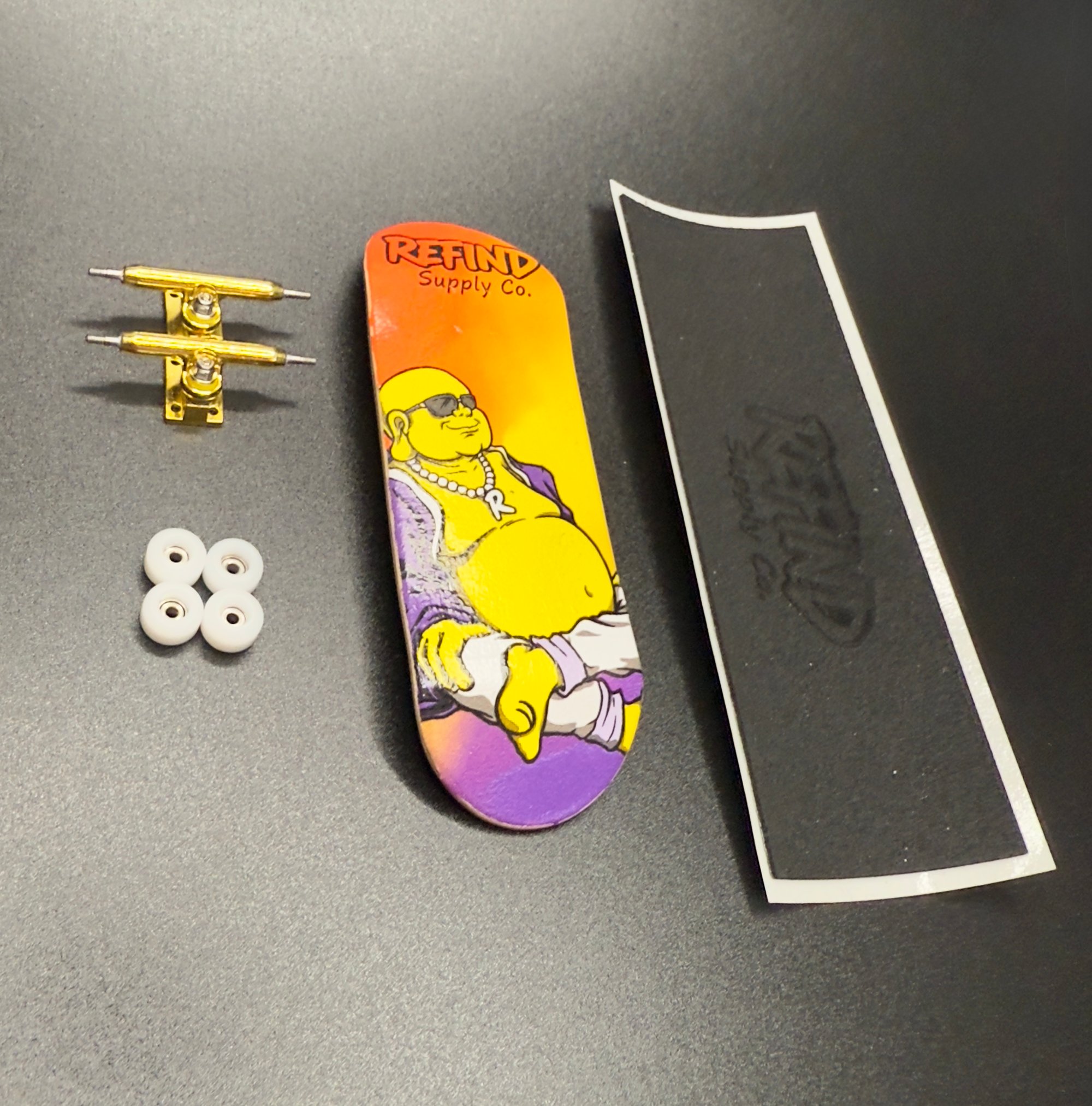 Complete setup bundles come with standard metal trucks in the same size as the deck, CNC polyurethane wheels, foam griptape, hardware and a fingerboard tool!