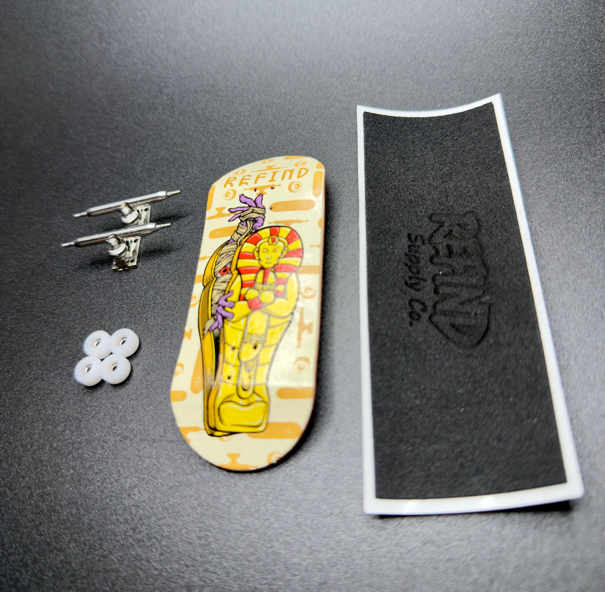 Complete setup bundles come with standard metal trucks in the same size as the deck, CNC polyurethane wheels, foam griptape, hardware and a fingerboard tool!